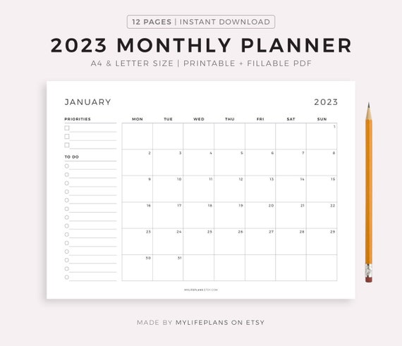 2023 Monatsplaner auf einer Seite Querformat Monatskalender Etsy